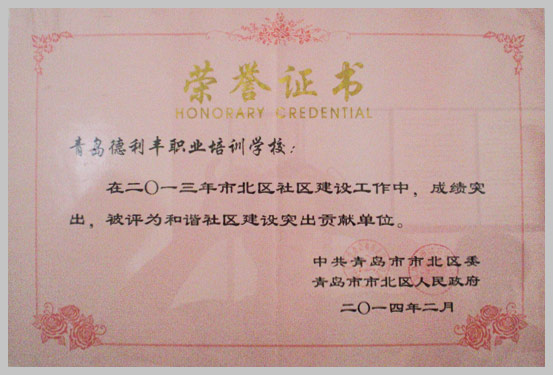 2014年被青岛市市北区委评委评为“和谐社区建设突出贡献单位”
